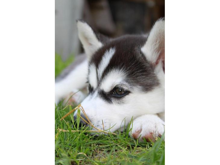 hun blev hentede hende i Belgien den mandag den 8 juli. Vi kørte selv ned og hentede hende. Hun fik navnet Zoey da jeg har 2 andre husky med Z navne :)