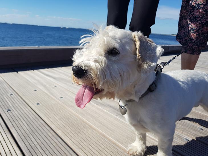 Han er en UTROLIG rolig terrier. Selv om banken på hoveddør eller i tv kan han godt syntes han skal lyde lidt farlig og gø af det/dem.