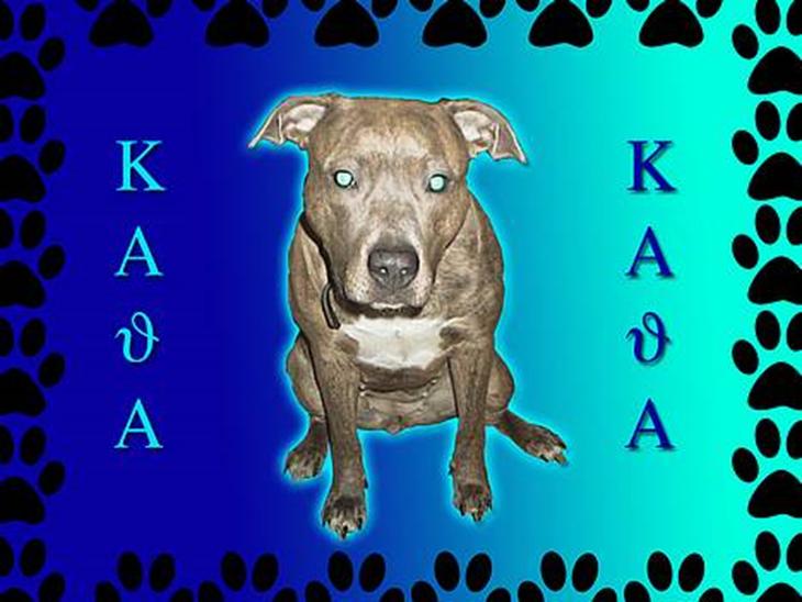 kaja har et stort temp. hun vil helst lege med andre amstaffs og helst hanner hun kan få til at løbe efter sig. ellers er hun en glad hund der elsker at putte under mors dyne. hendes bedste ven er vores kanin og naboens gadekryds bogi. hun elsked og hænge i sin pind der var bundet op i et træ men desværre knækked tænderne.