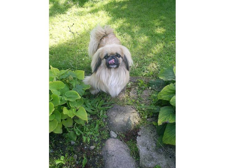 Stille og rolig han hund. Har ikke det naturlige aggresive temp. som er normalt for en pekingeser. Jeg har aldrig rigtig hørt ham gø, mon han kan!?