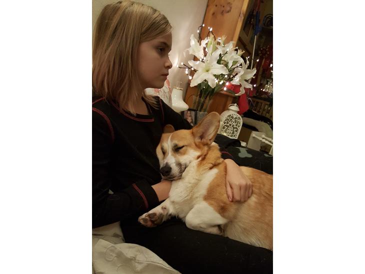 En lille charmetrold som elsker at nusse og sidde på skødet og puttesove hos mig. Hun elsker gåture og alle de Corgitræf vi deltager på, samt ture i by og skov. Hun nusser om vores katte og har et helt specielt varmt og godt venskab med min hanhund Egon Olsen som er morbror til Hera.