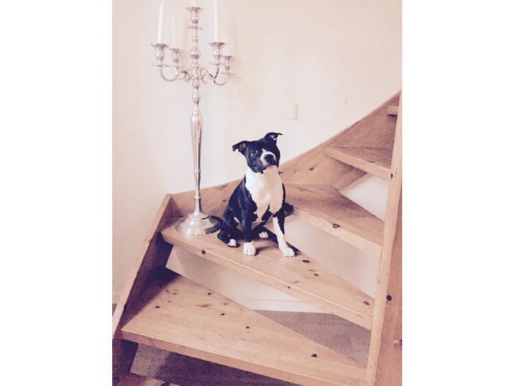 Karma er meget glad hund som ikke er bange for noget hun er fuld af energi og altid klar til at lege