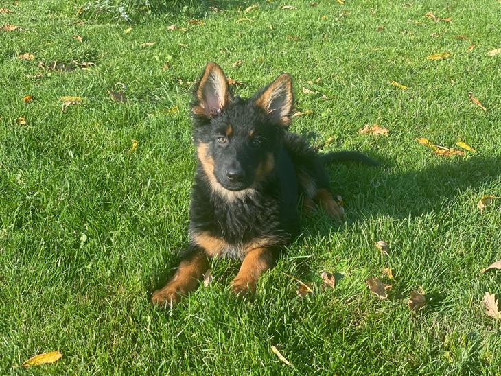 Vi forventer, at han bliver ca. 55 cm over skuldrene og kommer til at veje i omegnen af 25 kg.
