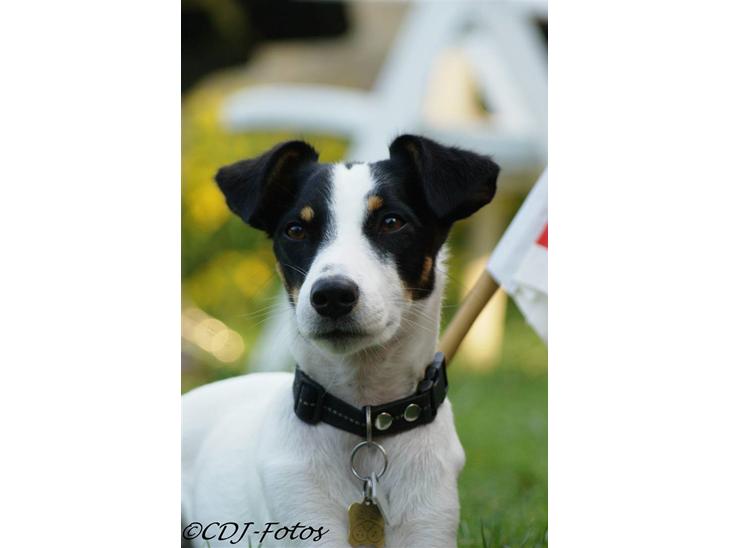 Dog binder vi Luca i haven, da han har et enormt jagt instinkt, og der er meget vildt i vores skov xS Og så er der en trafikkerede vej på den anden side af huset, derfor bliver han spændt fast... Men han har det godt, og er fuld af energi.