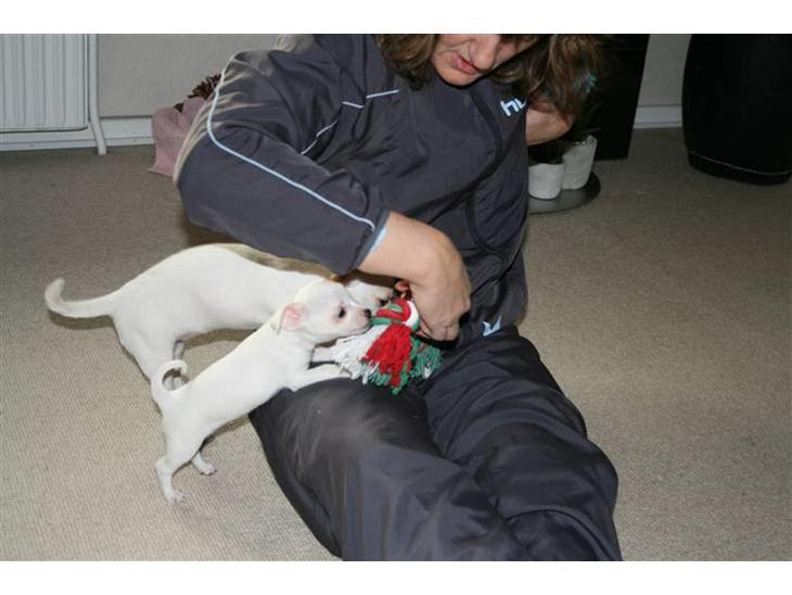 Han er bare super sød:) han kom fra en lejlighed da vi fik ham, så når der kommer nogen gør han, men stopper når han lige har set dem an:D ellers er han rigtig kær og nuttet, og han får tit damp og løber rundt i cirkler:)