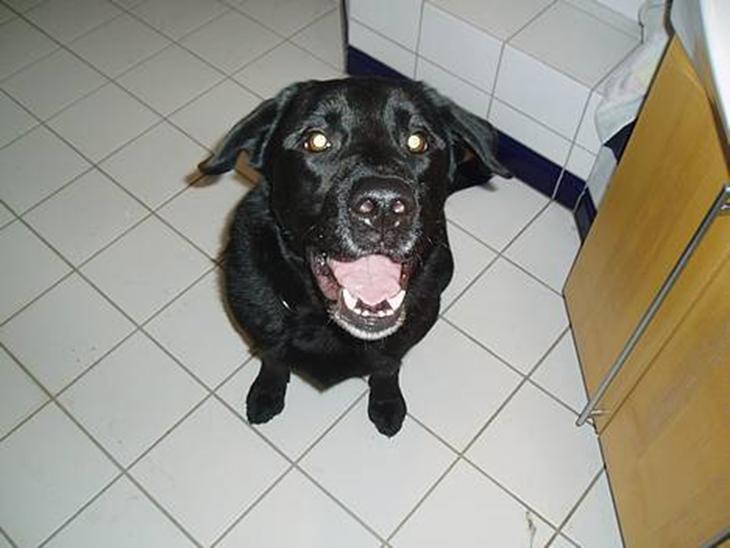 Tyson er en sort labrador blanding, vi ved ikke med hvad, men jeg tror der er lidt rottweiler i ham. Der hjemme er han en dejlig familie hund, han er dog ikke så glad for små børn.