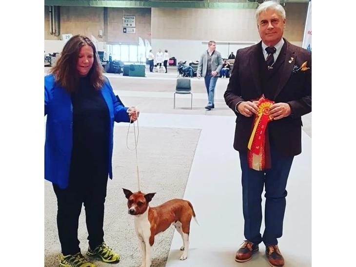 Fantastisk Rat Terrier med en god robust bygget krop med frisk terrier temperamang en hund som viser sig selv på shows med sine store frie bevægelser han elsker masser af gå/løbeture i naturen, han bliver brugt som skadedyr bekæmper og showhund og alm familiehund.