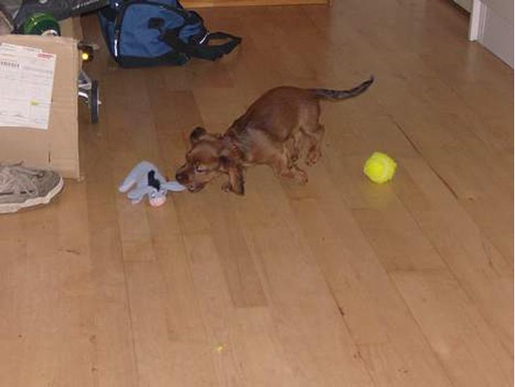 Channel er ikke en blandingshund.. 100% ren Cocker spaniel, så hun har ikke gravhund i sig, men din hund er også super sød..