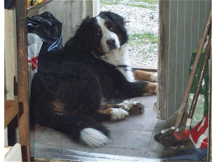 En racetypisk Berner Sennen - han hører dog til dem med rigtigt krøllet pels.