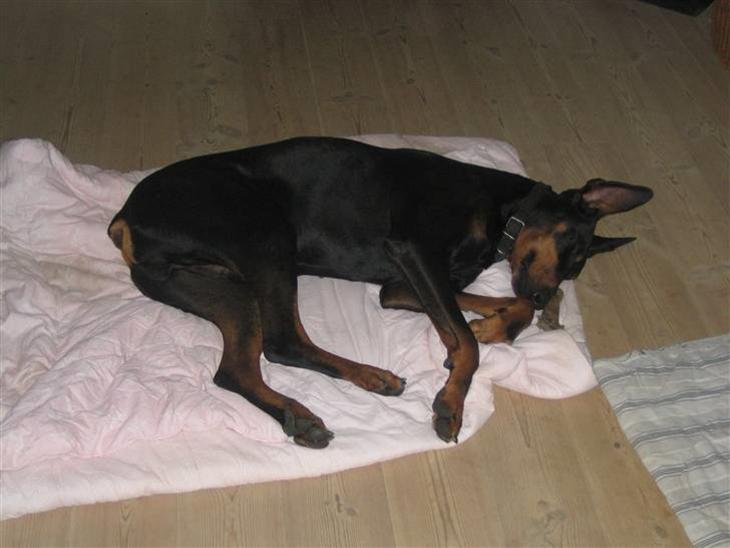 Mor og far ægte dobermann, men ingen stamtavle til Tino..