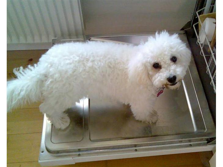 Høj her fra. Hvor er hun fin. Tricket med at så oppe på opvaskemaskinen, kan min cavalier tæve også;-)