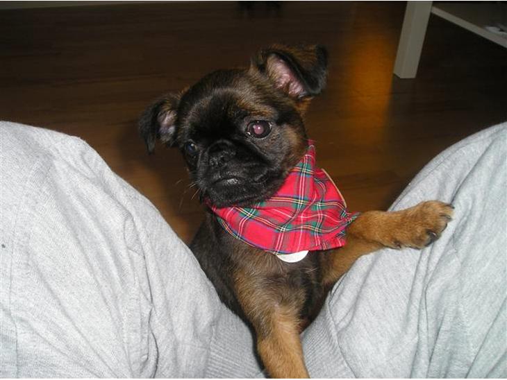 Hvor er han sød. Har kikket meget på griffon racen, virker til at være en fin lille hund. Han skal nok begynde at spise, han savner bare sin familie
