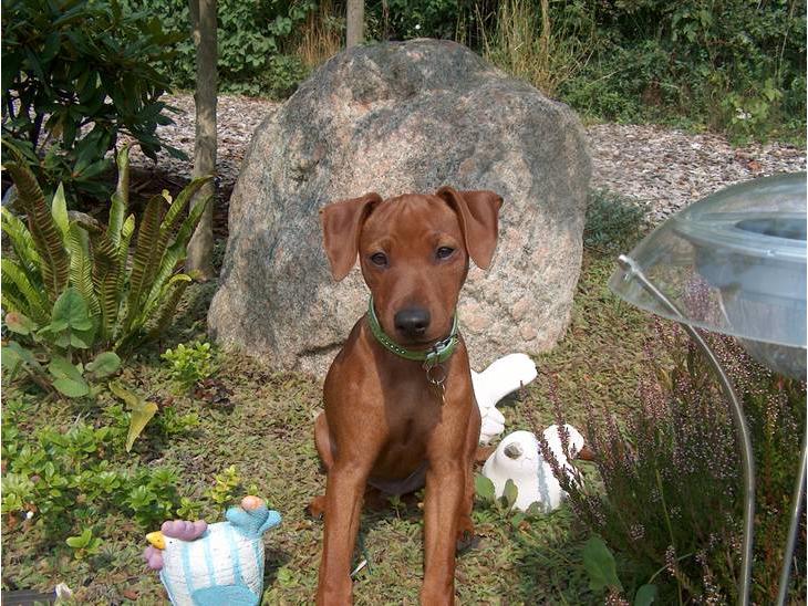 Stor Dværgpinscher på 8kg og 39 cm høj.. eller det jo nok en stor størrelse for den race, men han blev næsten alt får hurtigt stor,. :p Joey er født d.3 maj 2007
