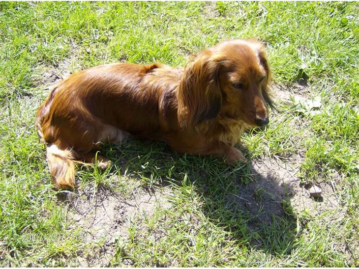 stine er en meget venlig lille gravhund hun er helt rød med brun næse og fine krøller på ørene hun er god til at passe sine hvalpe