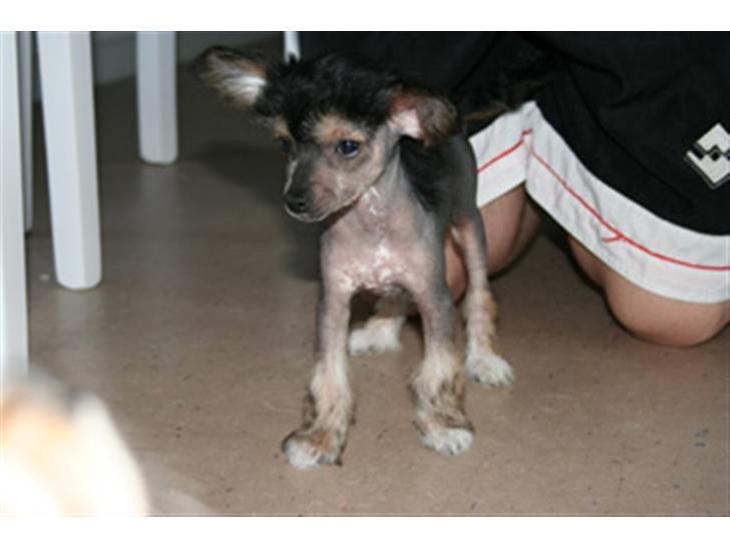 Hun er en Chinese Crested (CC), og er sort med lidt hvidt og creme farve i. Født den 02.06.07.