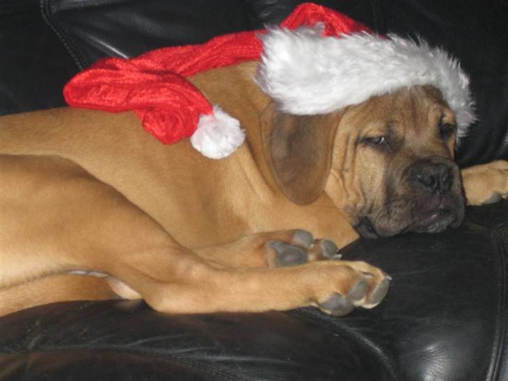 han er en dejlig hund af blandingen af en dog de bordeaux og bullmastiff på 2år og vejer ca 46-47kg.