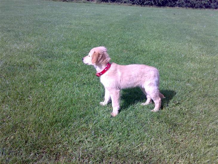 takker for besked.. ja det er da sjovt, man ved aldrig hvor store de bliver, trode ikke bella blev ret størrer end dk/sv gårdhund men hun er blevet noget større.. men tror jeres bliver lidt i højde som en lab hun har jo nogle lange ben, og store poter.. men hun ser heltvil nusser ud, nysgerig... og vit også lidt doven, hun ligner en rigtig putte hund.. smiler..