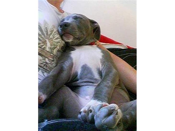 Alou er en lille, lækker blå amstaff - hun er glad og legesyg - elsker at kysse, kramme, sidde på skødet og ligge i ske og så eeeeelsker hun sin mor... :o) Tror hun er forelsket i Loco der bor længere nede af gaden - hun "kurrer" som en due når hun ser ham - men han er nu også en flot brindle staff.