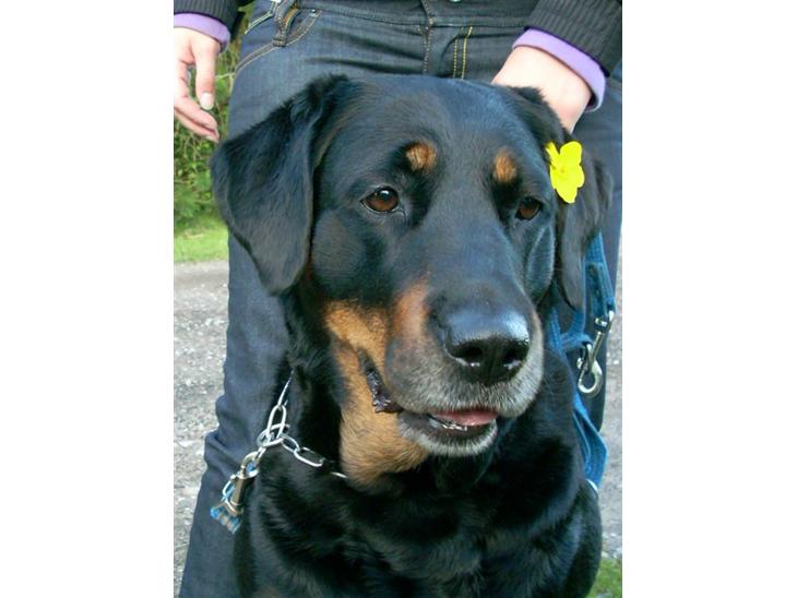 Men hun er en blanding mellem en rotwieler og en labradore. To dejlige hunderacer og meget flotte :D