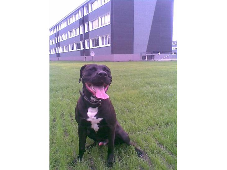 Smuk smuk hund, og hold da op nogle muskler han har som 1 årig. Virkelig en lækker amstaff. Bedømmelse er givet ;o)