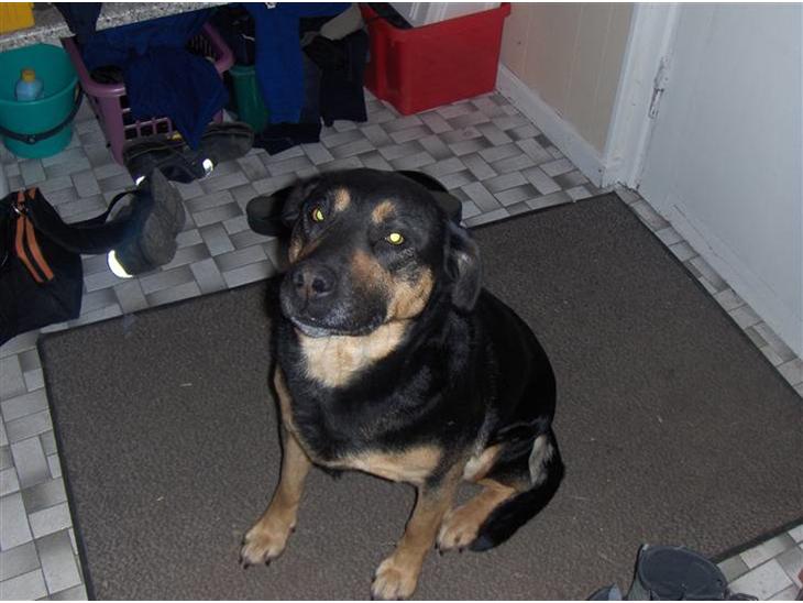 Hun er en fin sort og brun hun, da hun var i god form kunne hun springe 1 meter eller over. hun kan rigtig godt lide og gå en lang tur. hun kan ikke så godt lide og blive våd, men når hun først er blevet våd er det ikk så slemt igen.