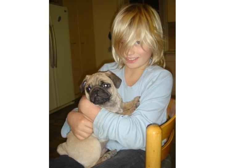 Er altid glad og meget legesyg. Elsker at tumle med vores store hund Bailey, men kan stadig være lidt forsigtig med nye hunde.