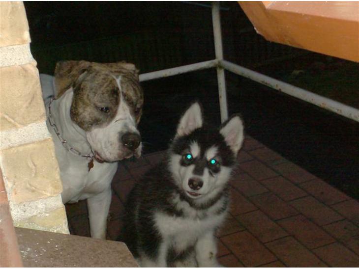 men meget legesyg. og elsker at lege med andre hunde. og siger fra hvis det bliver for meget for ham.