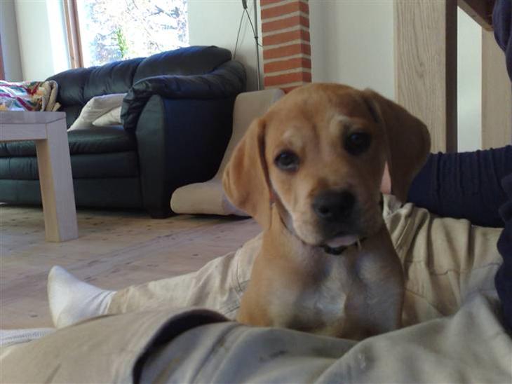 en stille og dejlig hund der elsker at ligge på skødet/sengen og putte. han er meget legesyg og nysgerrig og meget glad for andre menesker og dyr
