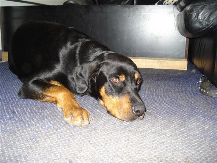 Hvor er hun da sød... Men er du sikker på at hun er ren rottweiler?? Nu hun har brunt på halen, det har jeg aldrig set før nemlig, og synes ikke hun har samme udtryk som andre rottweilere - hvis ikke hun er ren, er der en kategori der hedder blanding af recer :o) Høj herfra!