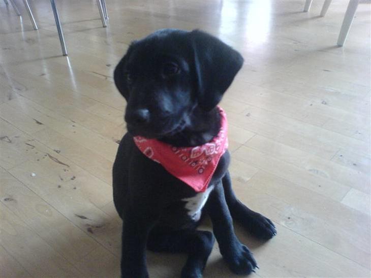 Hans mor var halv Kleiner münsterländer og halv formel et labrador og hans far er formel et labrador..