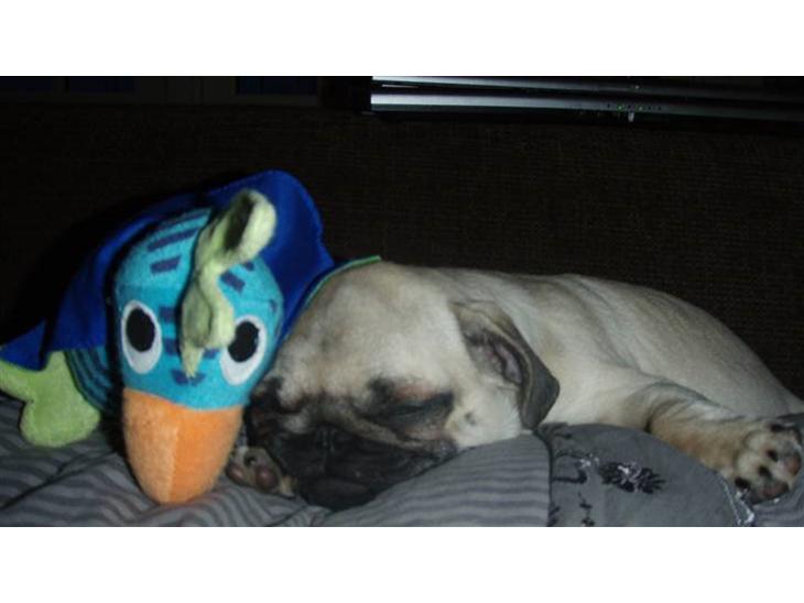 Smider lige en høj tilbage til din dejlige mopse basse:) det er så lækker en hund:)
