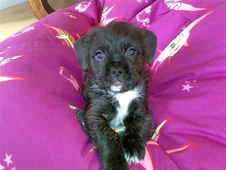 det er en blandning af en fransk bulldog og en coton de tulear er født 18 november 5.2 kilo nu er oppe på 7.1 kg 19.3.o8