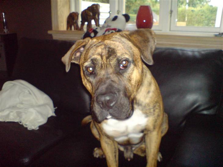 sød og kærlig hund. temlig doven. Han elsker alle mennesker og de fleste hunde. men han er dog en han hund. Så hvis han kan komme til at bestemme, så har han det bedst.