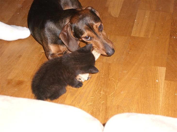 Han er en meget lille gravhund blanding af ru håret og korthåret vejer ca 5½ kg <3