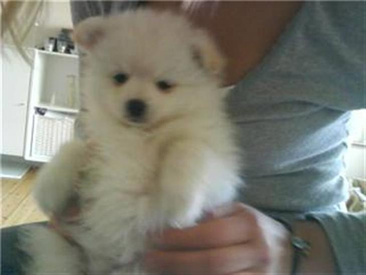 Han er hvid, og ligner en lille isbjørne unge. Han er slet ikke til at stå for!