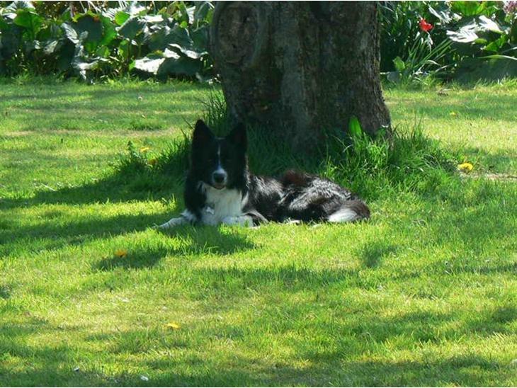 Han er 3/4 border collie og 1/4 islandsk fårehund. Han ligner mest en border collie men når han er glad krøller han hale ligesom en islandsk!