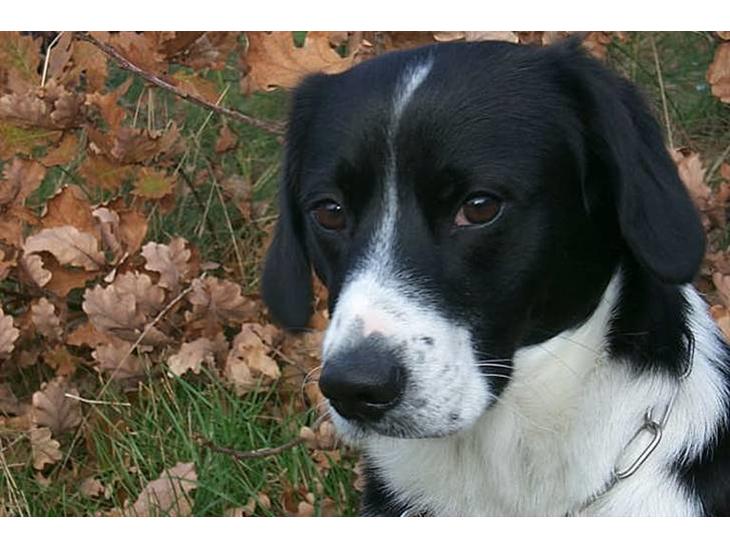 hans mor er en brun-hvid cokker spaniel og faren er en border. han er smuk og dejlig