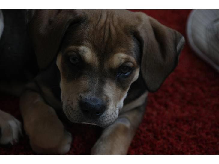 Rigtig dejligt, han elsker at blive kælet og leget med. Desuden elsker han mad, det er bare det bedste han ved. Han elsker at sidde og putte med mor. Han er en ekstrem rolig og kærlig hund.
