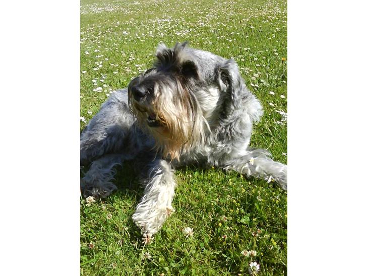 Bessy er en mellemschnauzer, så hun er mellem hun er nu godt nok en lille smule lille.