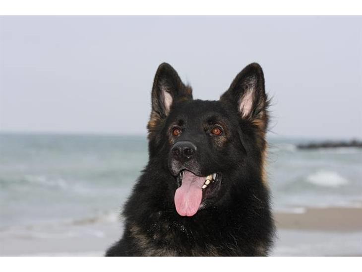 Det har han ikke, far er sort schæfer og mor langhåret schæfer