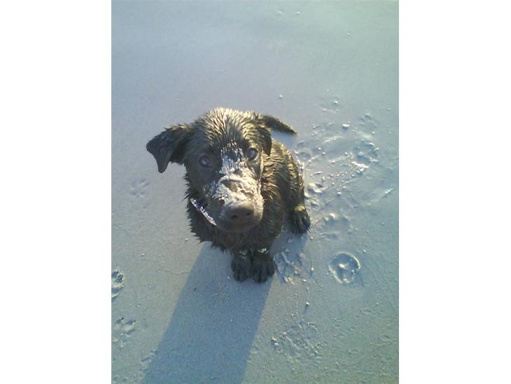 Kizka ELSKER også at være på stranden, når hun bliver noget større skal hun være jagt hund som sin far..