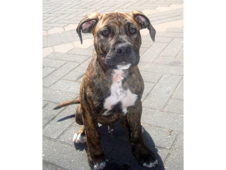 En pæn tigerstribet hund. Han kan godt lide at lege og er meget imødekommende overfor nye mennesker.