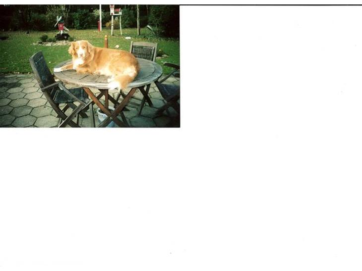 Hun er vaksom dame, passer godt på hendes hjem. Er glad for børn. En meget bestemt dame. Er en hygge hund.