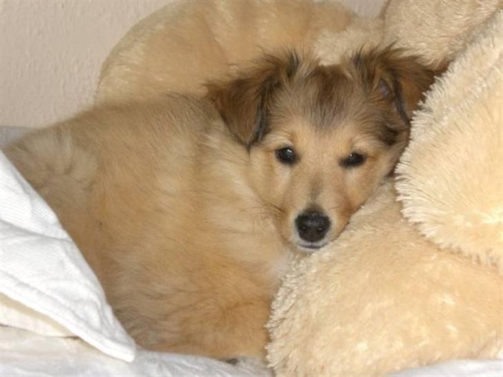 hvor er hun bare yndig - hun har fået en høj. Det er nogle skønne hunde Shetlænderne - har trænet sammen med dem i Bjerringbro-afd. - der var heldigvis plads til mine vovser osse ;o)