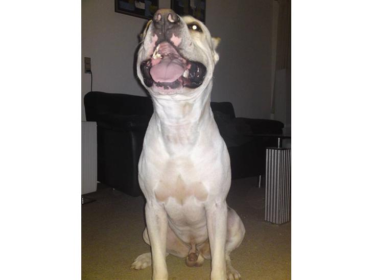 Har godt nok aldrig set Amstaffen i sådan en farve . Men smuk er han