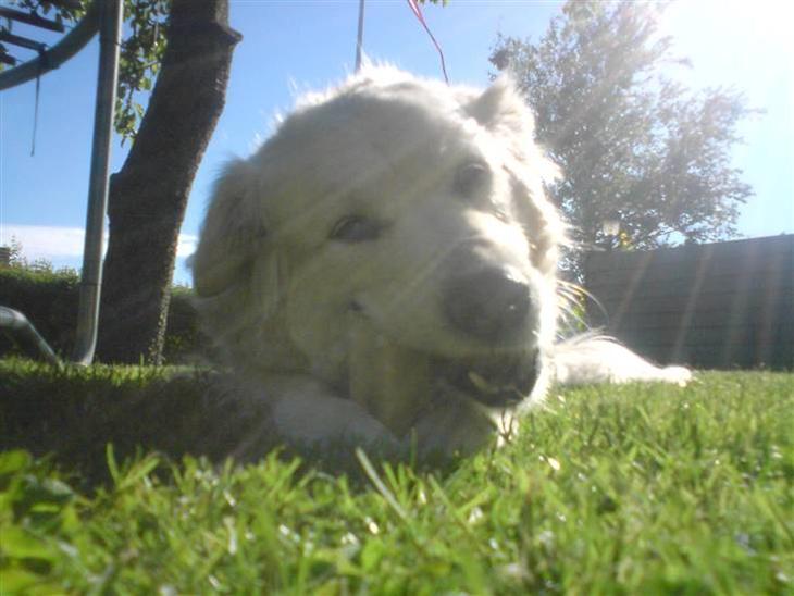 - Han er en blanding af en Golden retriever og en Samojede, en rigtig skøn blandine<3.