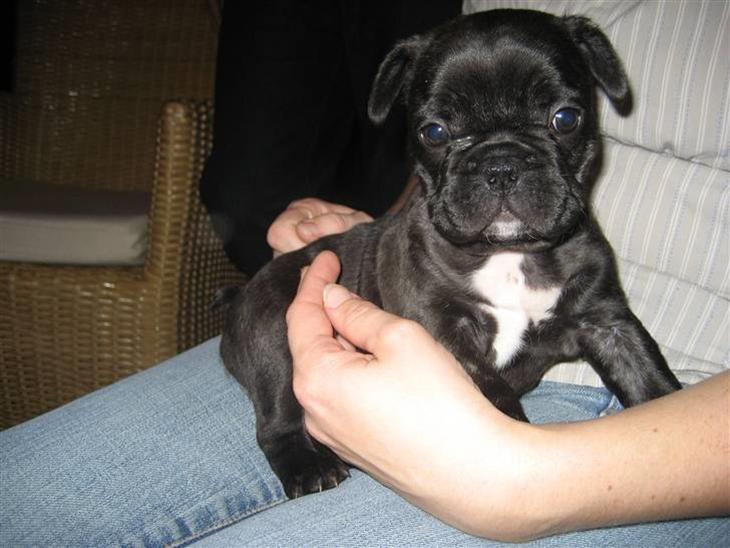 Berta er en tæt bygget Fransk bulldog som er 34 cm i skulder højde og vejer 12,6 kg.