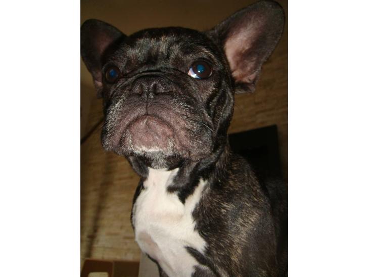 Tiger stribet fin lille dame med meget store flagermus øre. Hun er meget lille af en fransk bulldog, men på trods af sin lille størrelse er hun hurtigere end de store drenge i hundeskoven Elsker at putte under dynen og blive nusset på hovedet og på maven.