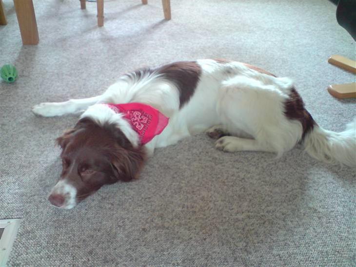 En dejlig hund som altid er glad og meget legesyg og han vil ligge både i sengen og sofaen så han kan også godt lide at hygge med os.. Vi fik ham af en som ikke kunne passe ham mere da han knap var to år gammel. Det blev han heldigvis glad for men det var ikke kun ham men også os. vi legede altid ude på græsplænen med bolde og pinde. Han er altid klar til sjov og leg..