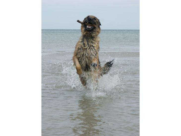 Hun har altid været en trykhedsnakoman lige fra dag et af hvis vi er ude et sted hvor vi har hende fri så går hun ikke mere en ca 2 m fra os men hun har været med ved vandet en gang allene og det NØD hun helt vildt og der var hun en hel anden hund hun slap sig selv løs og lod sig nyde det det var bare dejligt at se.....